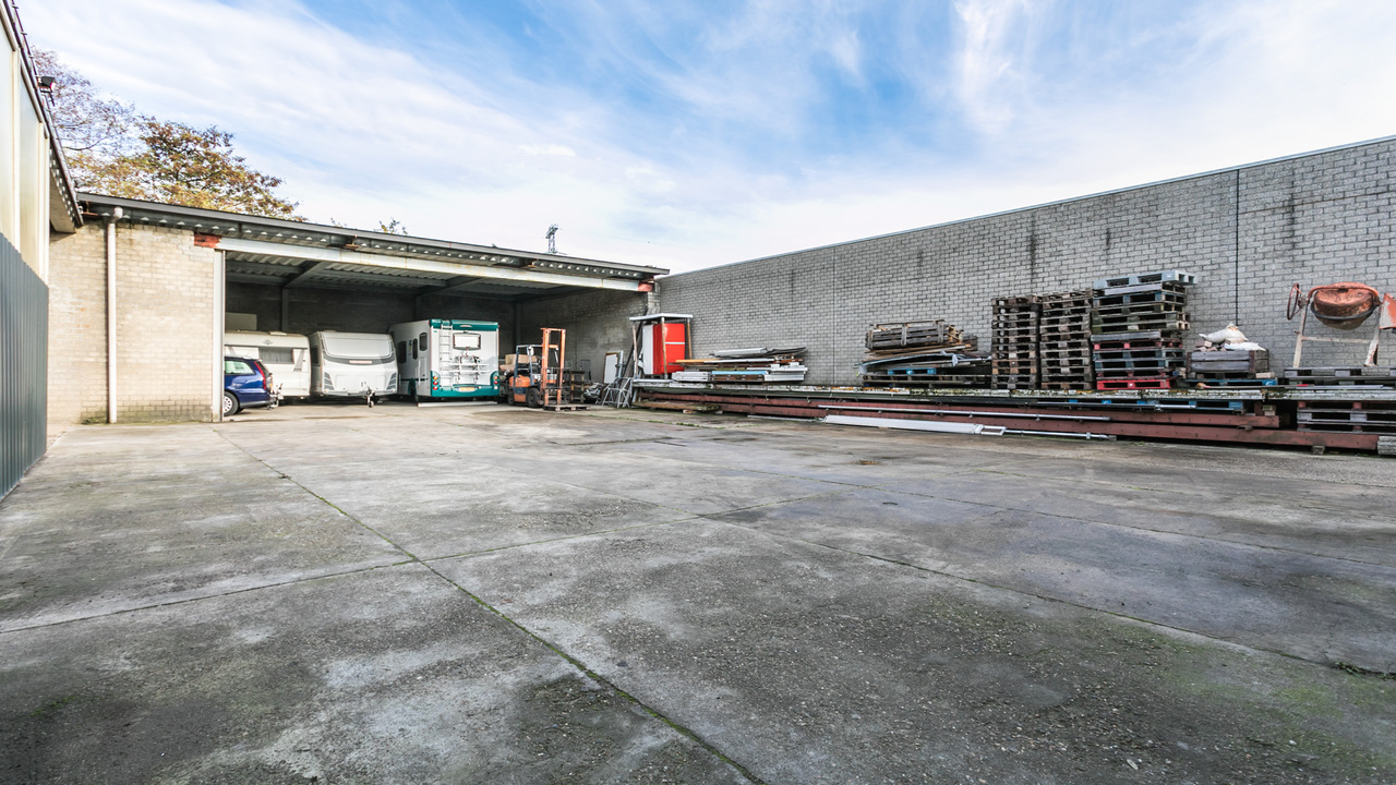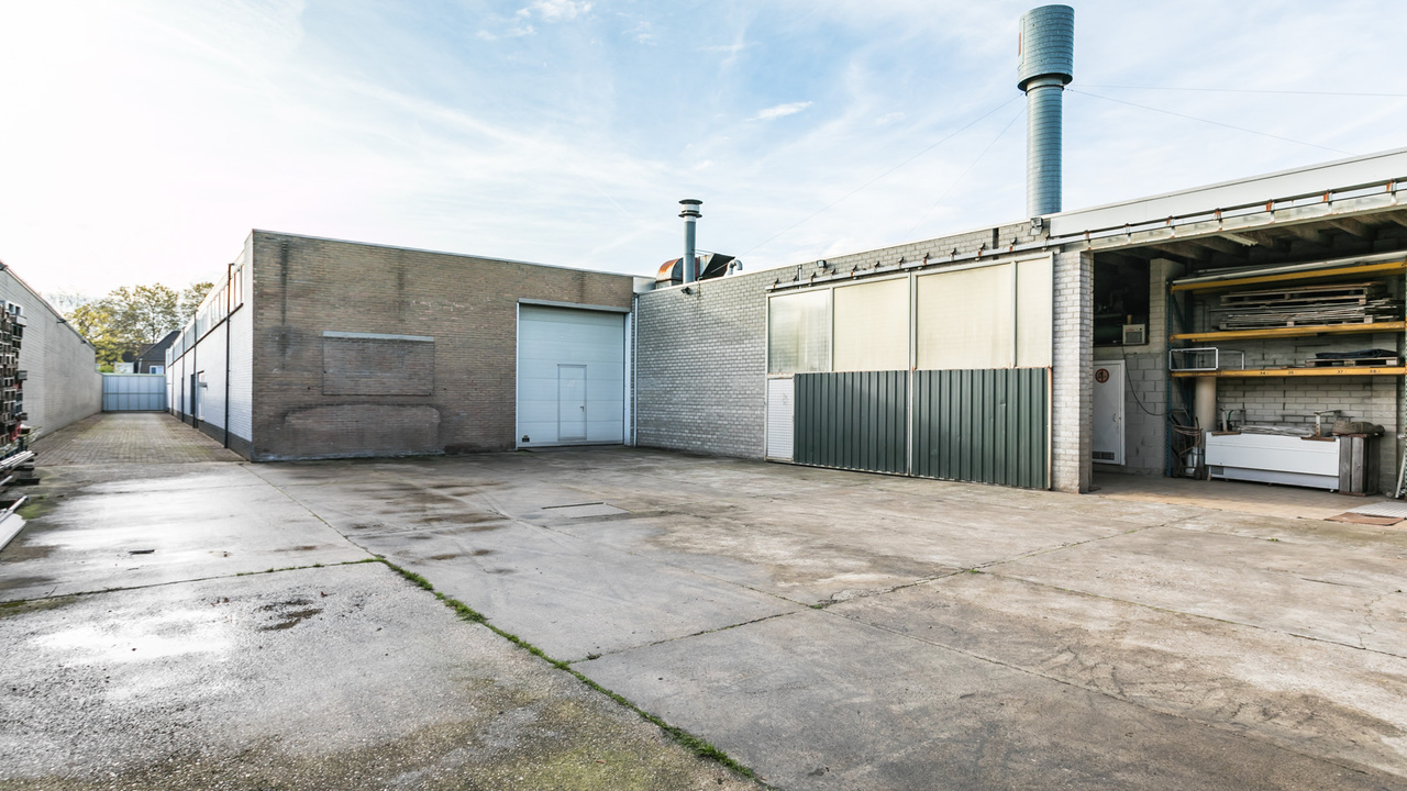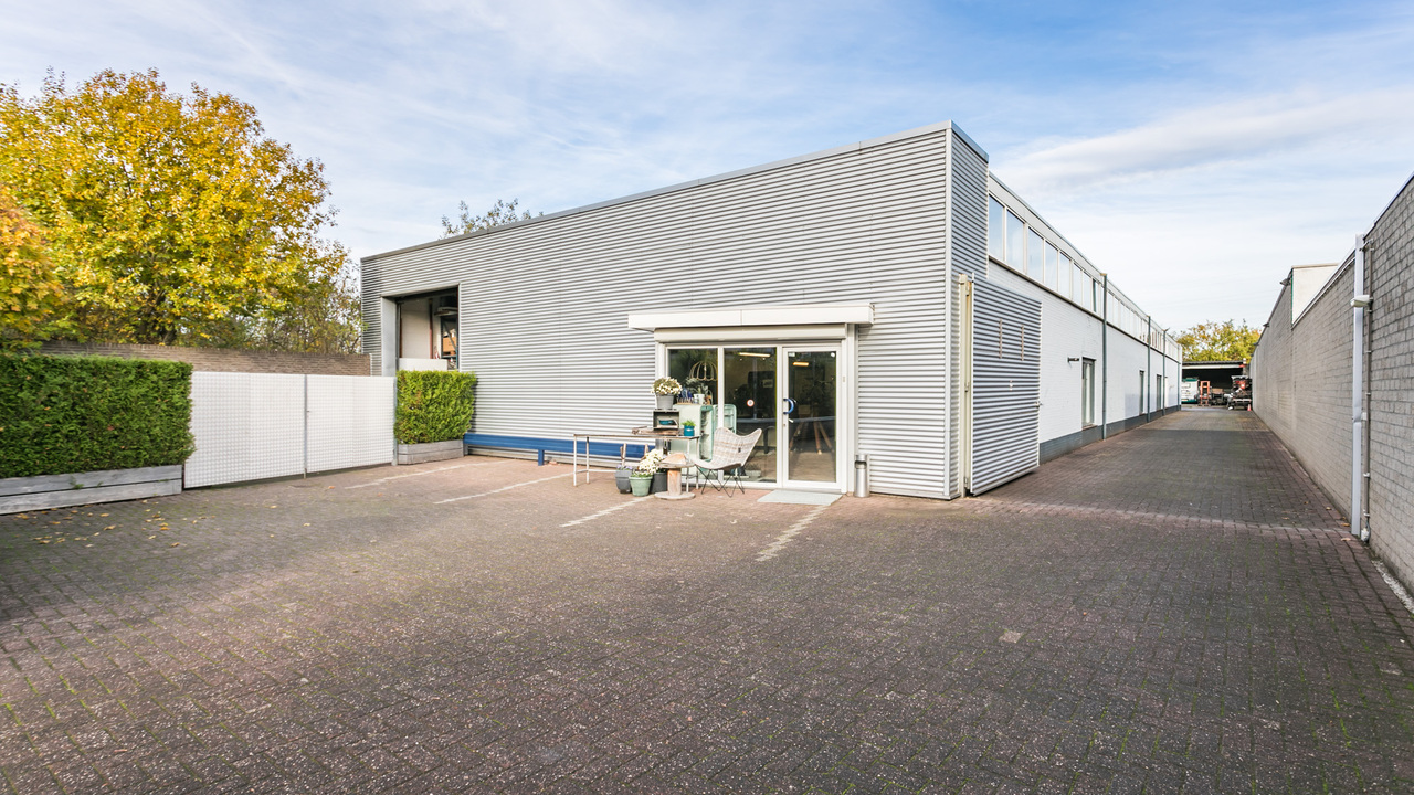 De bedrijfsruimte is zeer ruim van opzet en beschikt over 3 grote ruimtes, bouwjaar 1988, en ruim buitenterrein. De totale oppervlakte van het terrein is 1.243 m² en goed beveiligd door de (stenen) erfafscheiding.