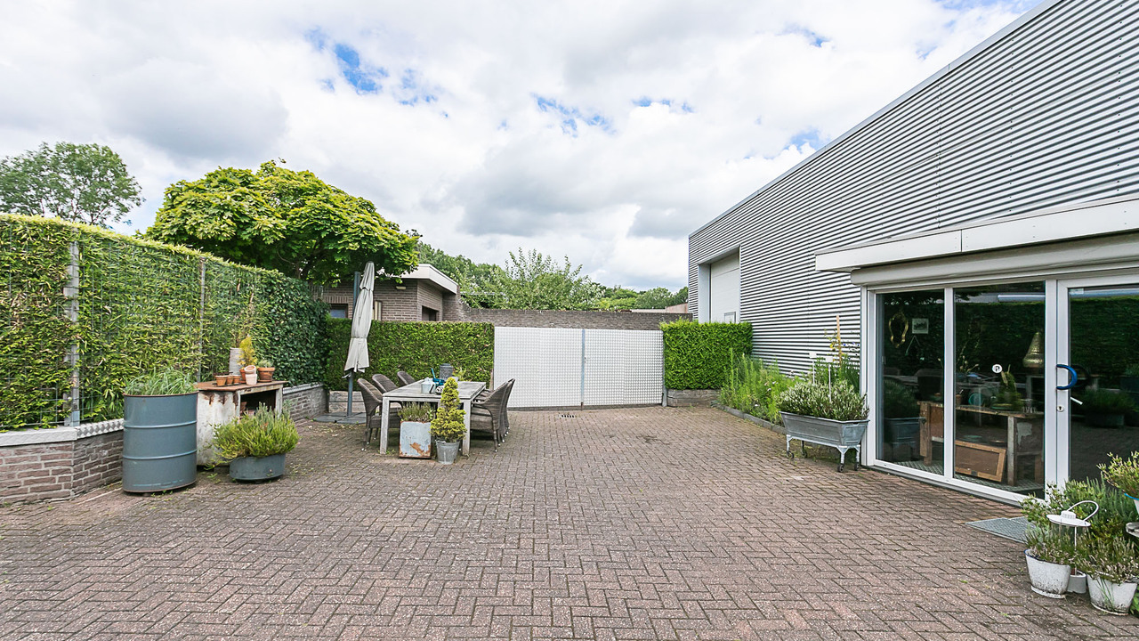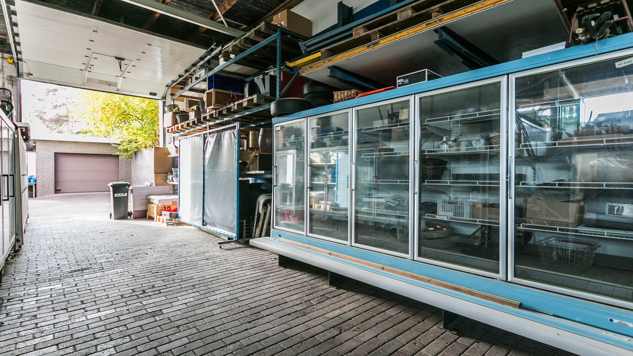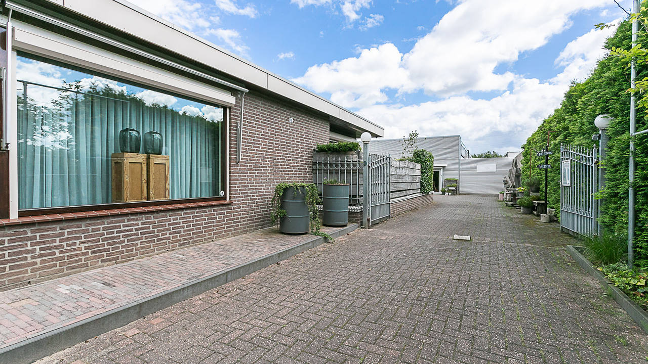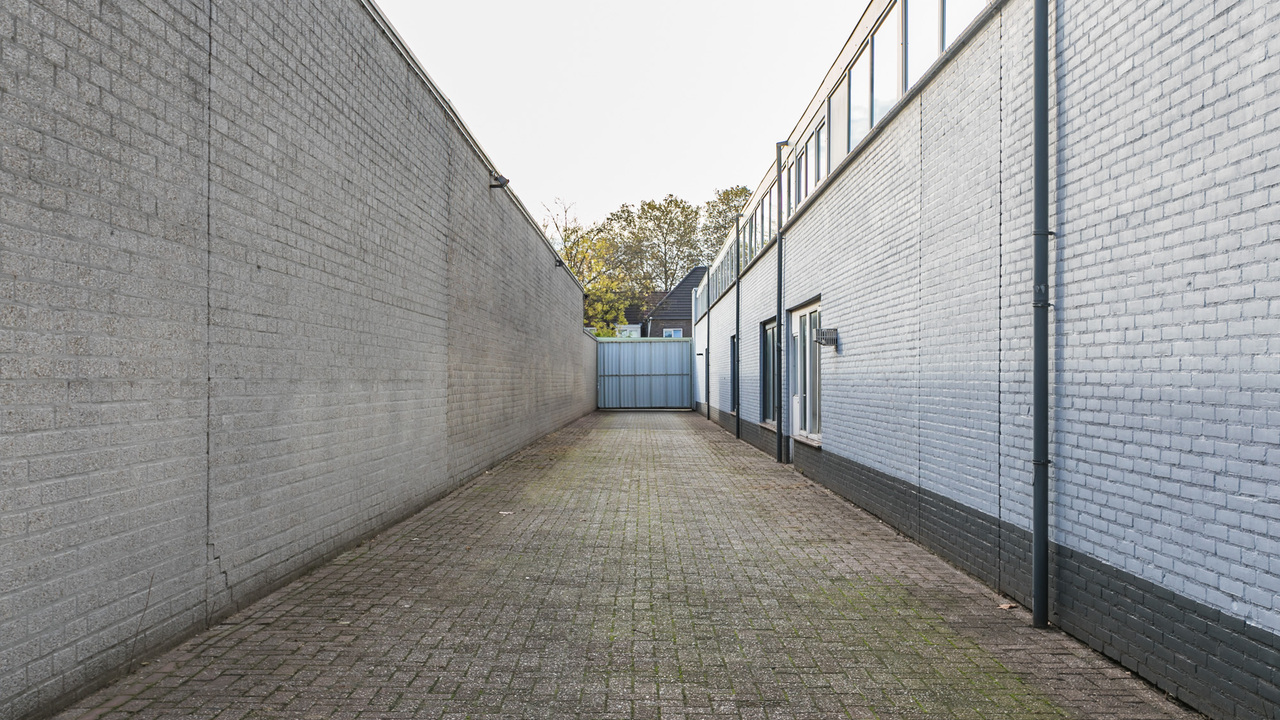 De bedrijfsruimte is zeer ruim van opzet en beschikt over 3 grote ruimtes, bouwjaar 1988, en ruim buitenterrein. De totale oppervlakte van het terrein is 1.243 m² en goed beveiligd door de (stenen) erfafscheiding.