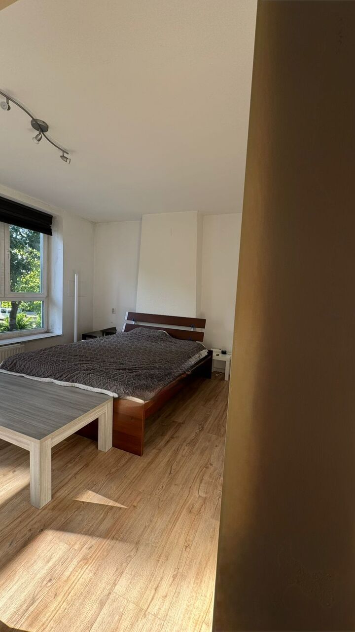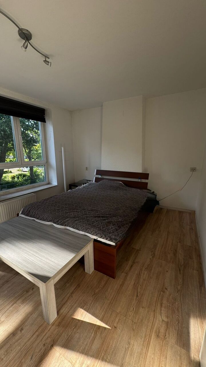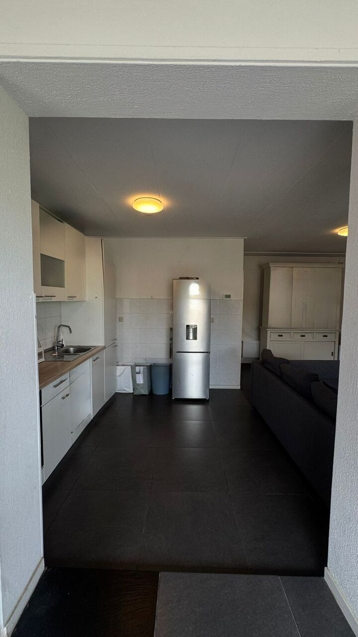 Woonkamer, verdeeld in 2 ruimtes met schuifpui naar dakterras; keuken met standaard keukeninstallatie; slaapkamer; geheel betegelde badkamer met toilet, douche en vaste wastafel; dakterras.