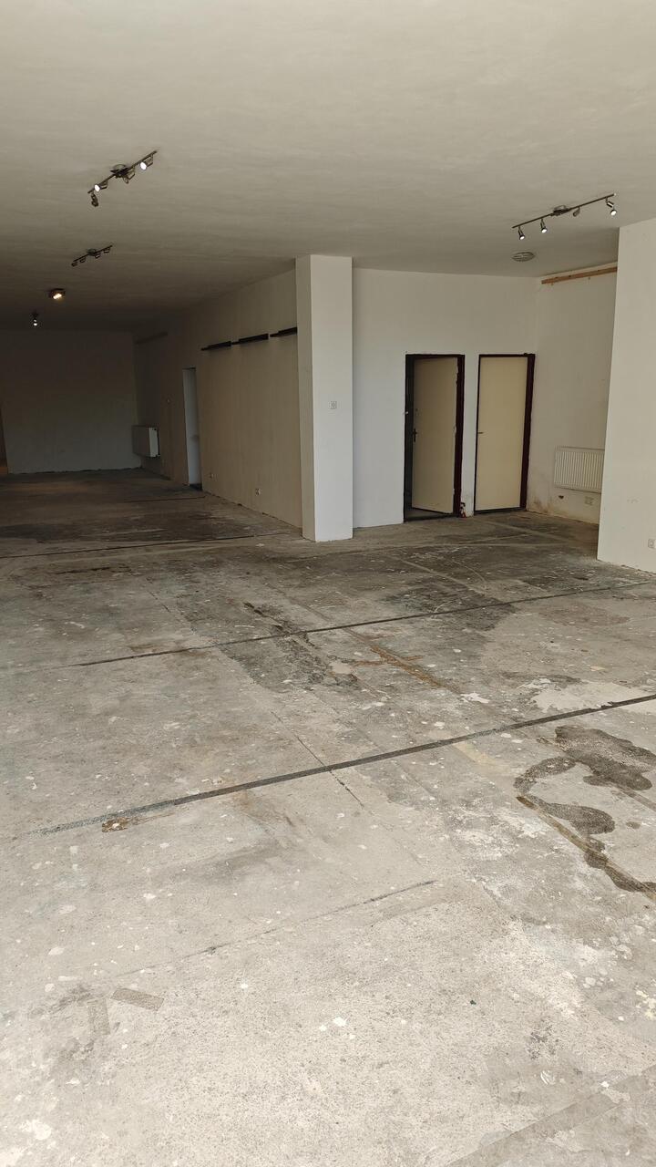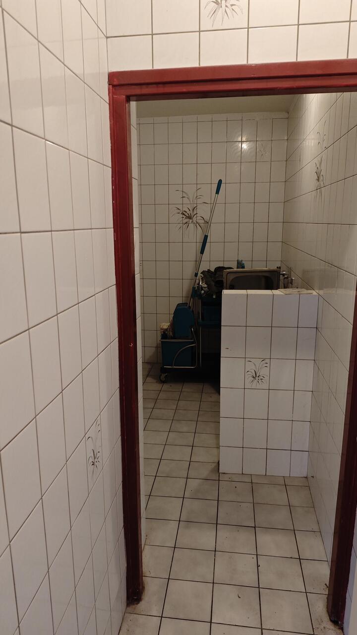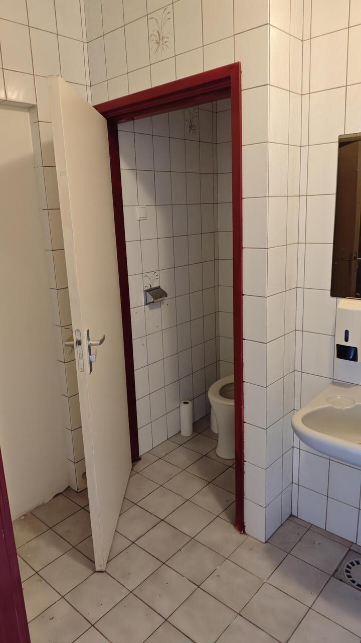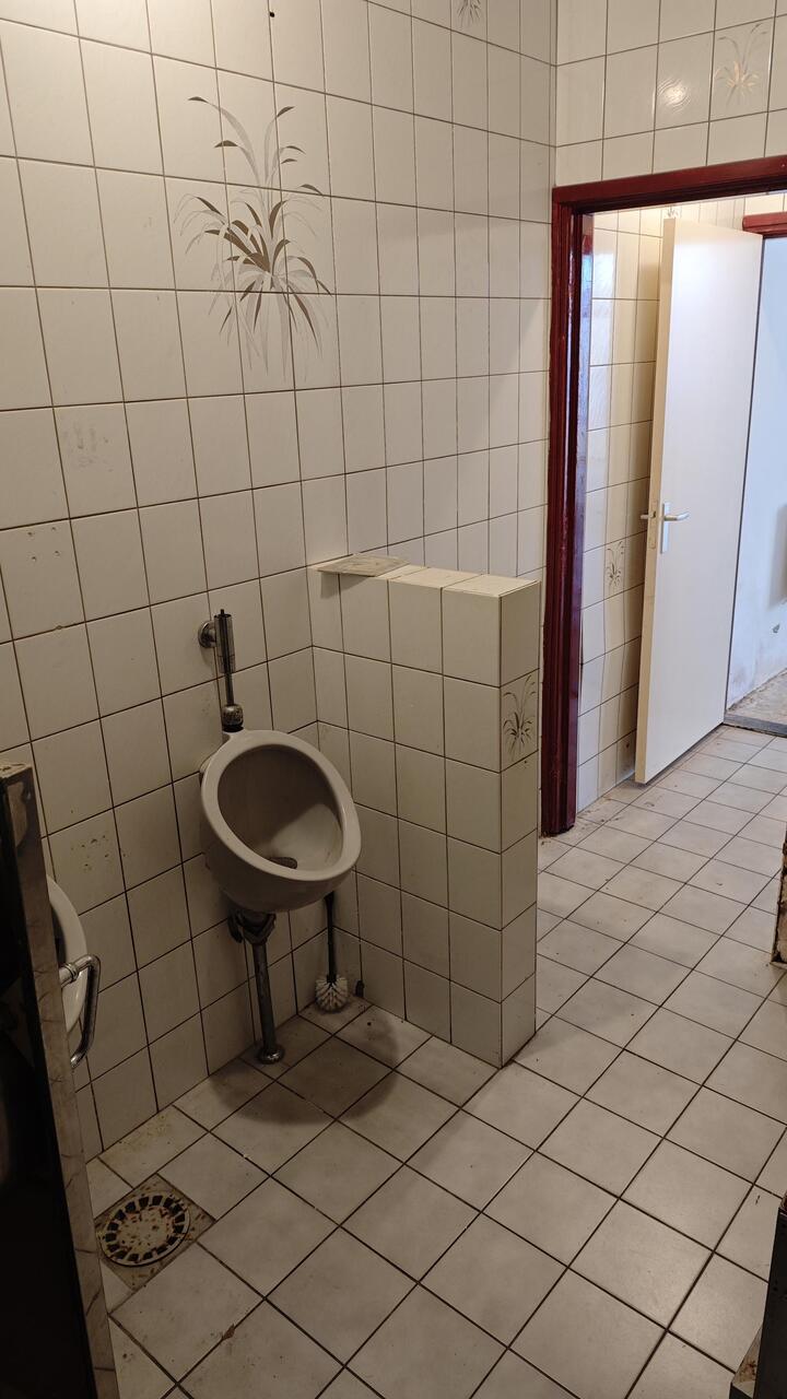 Winkelruimte (circa 120 m2); keukenruimte met cv-ketel en nooduitgang; herentoilet met 3 pissoirs, wc en vaste wastafel; damestoilet.