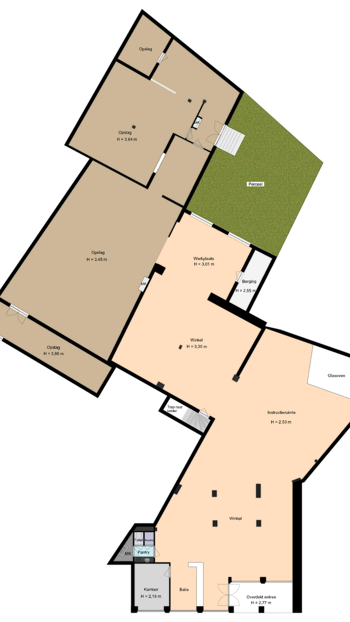 Veelzijdige Indeling: Naast de ruime winkel- en praktijkruimte beschikt het pand over een kleine kantoorruimte van circa 13m². De aanwezigheid van een pantry en toilet maakt het niet alleen gemakkelijk voor het personeel, maar biedt ook extra comfort aan klanten en bezoekers.
